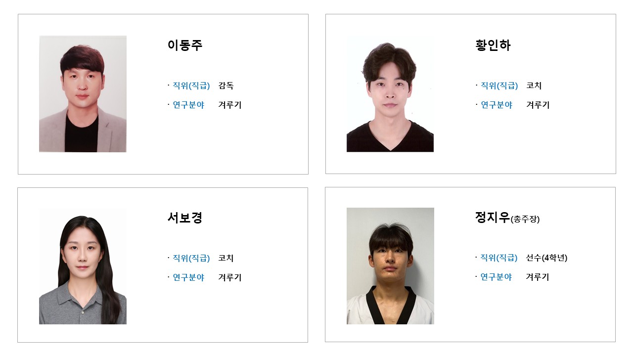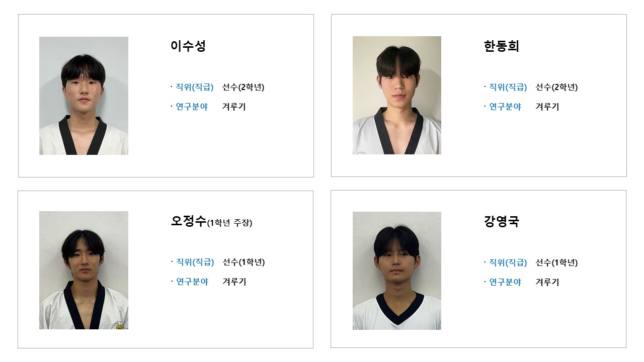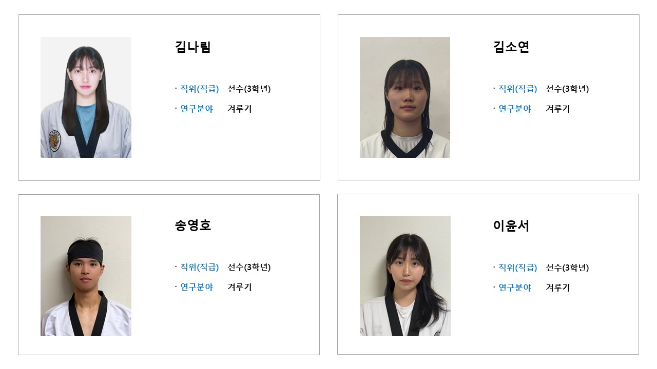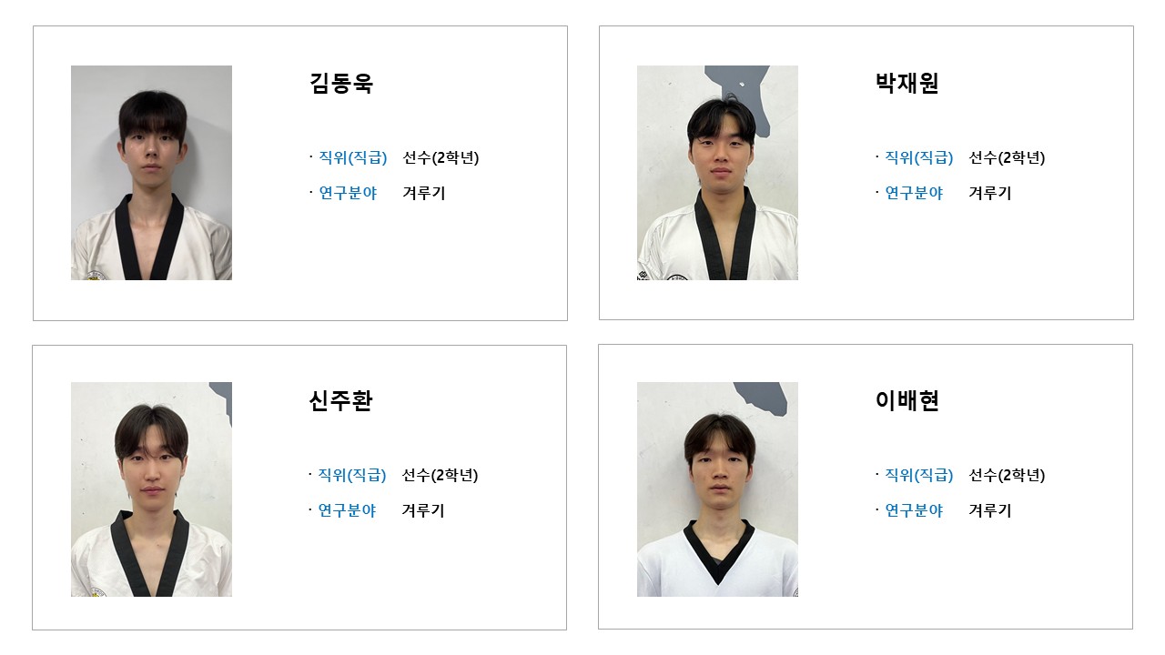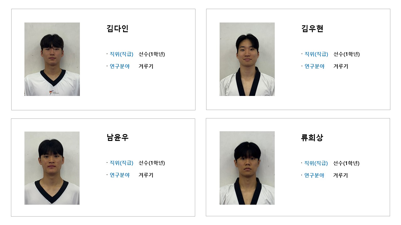학과소개 열린 미래 꿈이있는 대학, 동아대학교 메인으로 이동 학과소개 학과소개 교과과정 대학원 취업정보 갤러리 총장기대회 닫기 선수단 소개 오시는길 교수진 학과발전계획 학과사무실 장학안내 선수단 소개 Q&A 특성안내 닫기 겨루기 선수단 겨루기 선수단 품새 선수단 시범단 닫기 학과소개 학과소개 오시는길 교수진 학과발전계획 학과사무실 장학안내 선수단 소개 겨루기 선수단 품새 선수단 시범단 Q&A 특성안내 겨루기 선수단 품새 선수단 시범단 겨루기 선수단 SNS 목록열기 FACEBOOK 공유하기 TWITTER 공유하기 BLOG 공유하기 SNS 목록닫기 인쇄 url 복사 겨루기 선수단 소개 감독 & 선수 프로필 수상실적