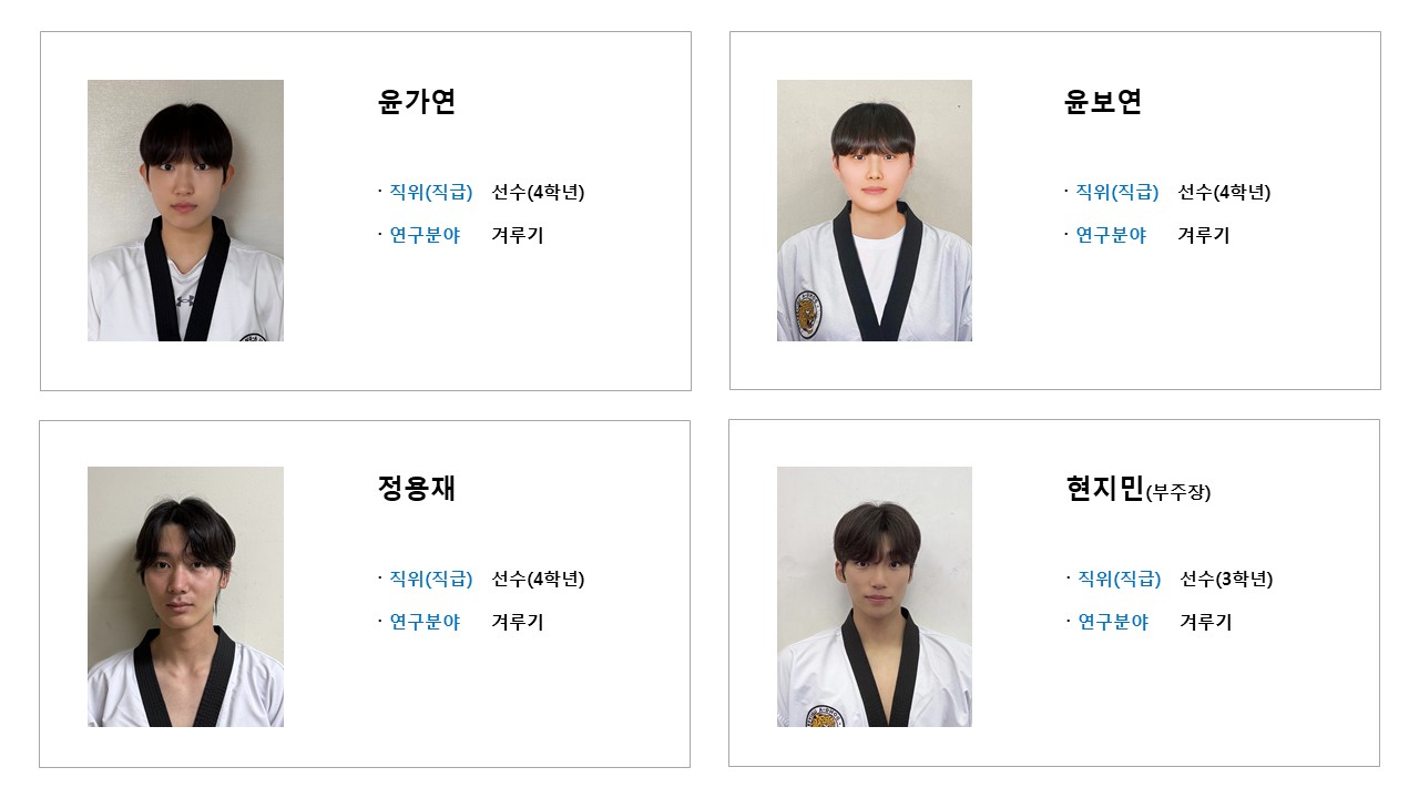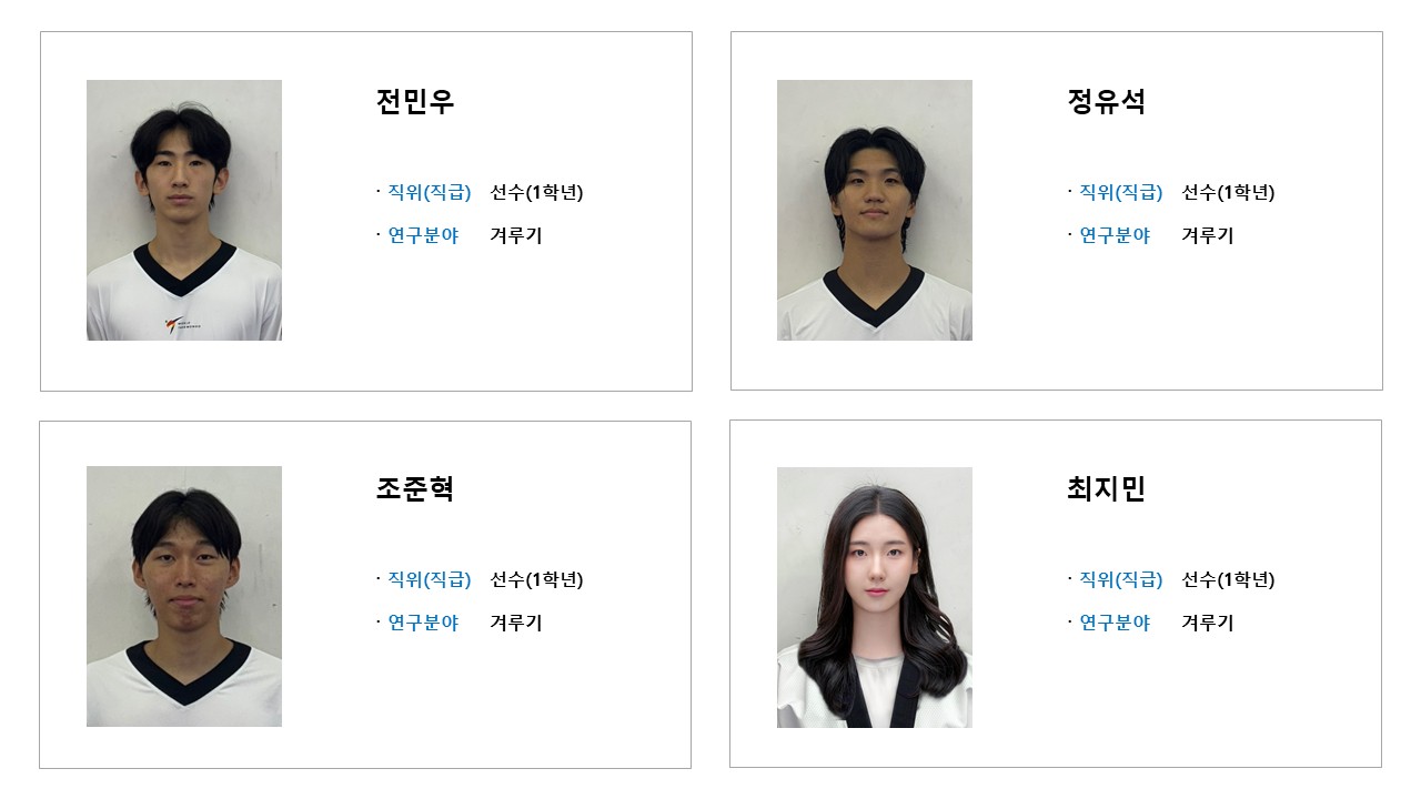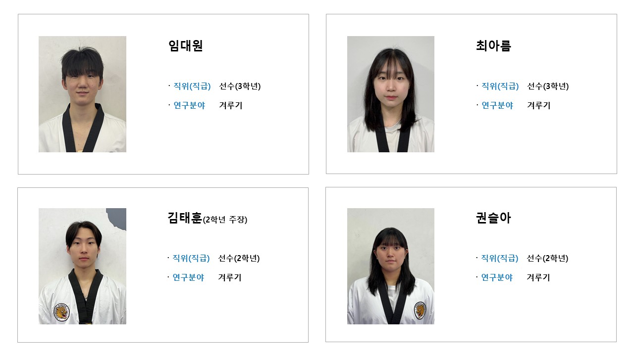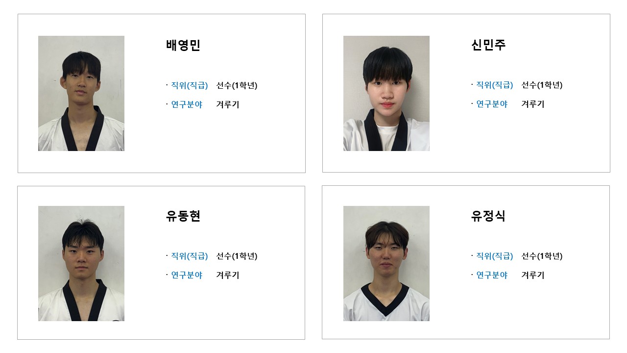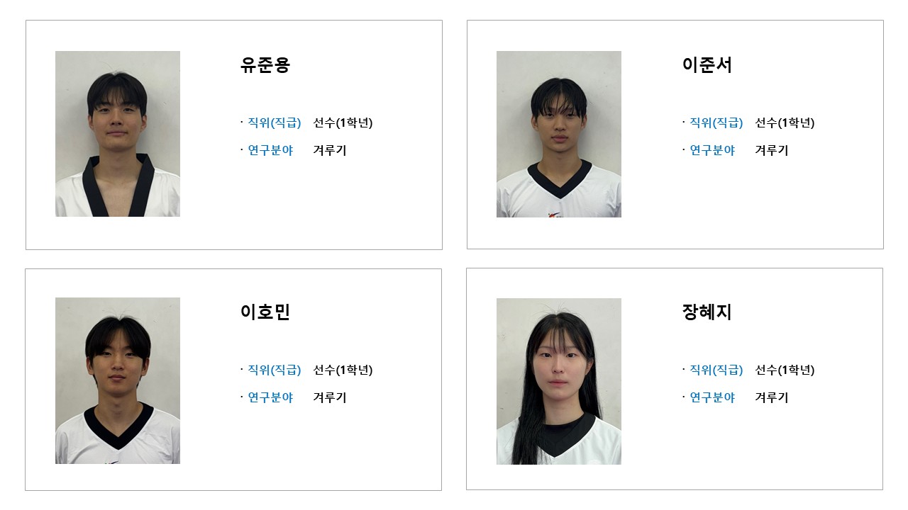 학과소개 열린 미래 꿈이있는 대학, 동아대학교 메인으로 이동 학과소개 학과소개 교과과정 대학원 취업정보 갤러리 총장기대회 닫기 선수단 소개 오시는길 교수진 학과발전계획 학과사무실 장학안내 선수단 소개 Q&A 특성안내 닫기 겨루기 선수단 겨루기 선수단 품새 선수단 시범단 닫기 학과소개 학과소개 오시는길 교수진 학과발전계획 학과사무실 장학안내 선수단 소개 겨루기 선수단 품새 선수단 시범단 Q&A 특성안내 겨루기 선수단 품새 선수단 시범단 겨루기 선수단 SNS 목록열기 FACEBOOK 공유하기 TWITTER 공유하기 BLOG 공유하기 SNS 목록닫기 인쇄 url 복사 겨루기 선수단 소개 감독 & 선수 프로필 수상실적